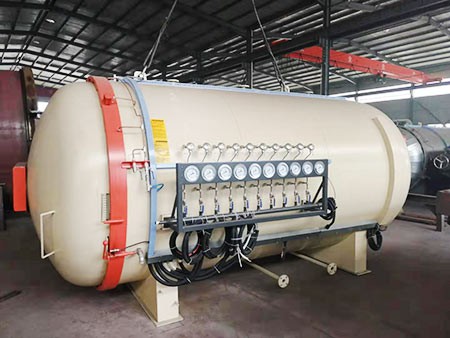 5、對于冷卻方面也要有著相應的專門設計,預冷時壓縮空氣對冷卻水進行霧化。在壓縮氣體作用下,霧化水能象氣體一樣均勻地進入到大型復合材料熱壓罐冷卻器各管道內,使冷卻器各部降溫速率一致,使冷卻器水排受到的熱沖擊小,熱變形小,且能高精度地控制大型復合材料熱壓罐的冷卻速率。
